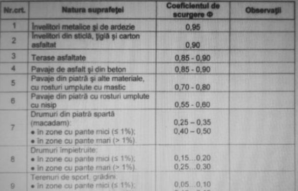 Conform prevederilor normative în vigoare, “cantitatea de apa meteorică preluată la reţeaua de canalizare se determină prin înmulţirea cantităţii de apă meteorică, transmisă de A.N.M. pentru luna anterioară facturării, cu suprafeţele totale ale incintelor construite şi neconstruite, dovedite de fiecare utilizator şi cu coeficienţii de scurgere recomandaţi de SR EN 1846–2:2006.