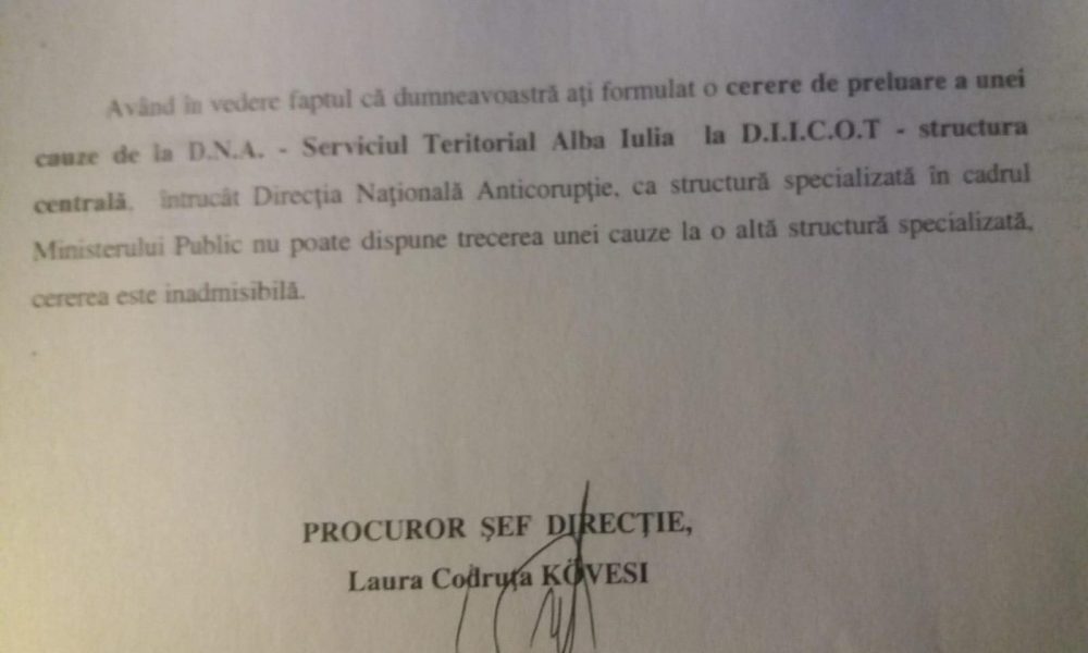 .Situatia din dosarul 67/P/2014- DNA Alba