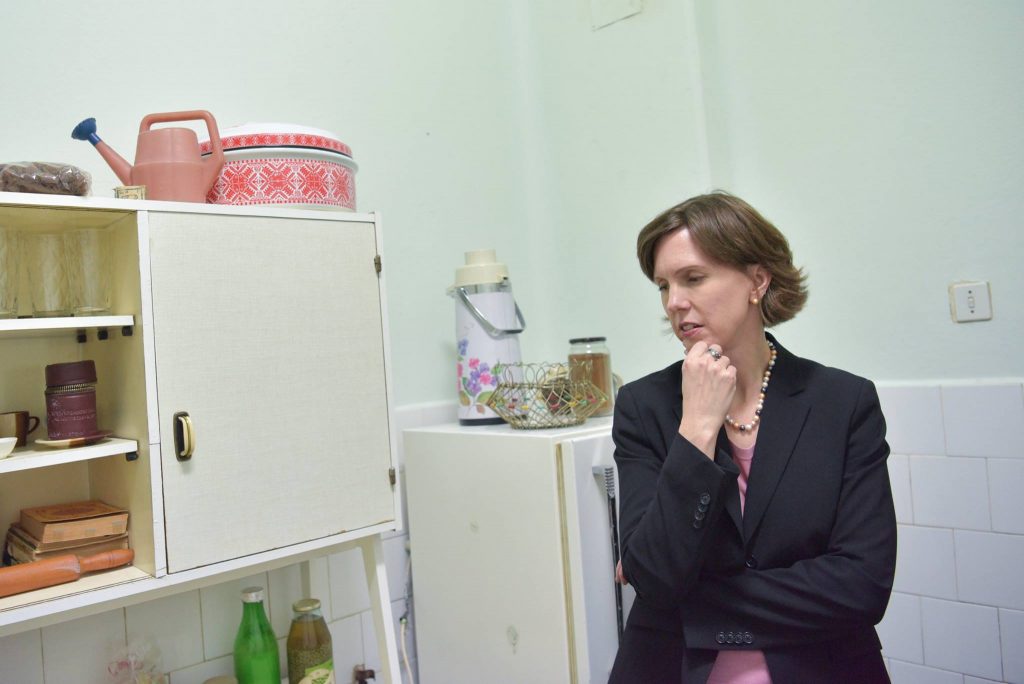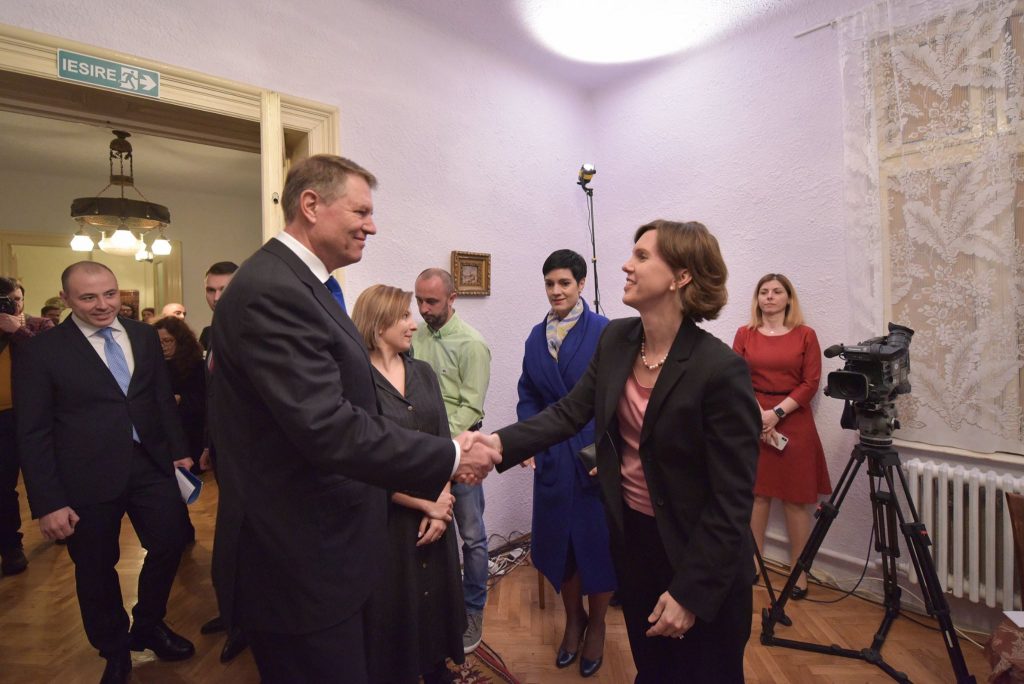 În apartament, ieri, e adus foarte discret însuși președintele României să țină în fața cîtorva tineri din rîndurile mișcării #Rezist un speech, după cel al adjunctei ambasadorului Klemm, am numit-o pe Abigail Rupp(foto), despre ceea ce a însemnat comunismul în România.