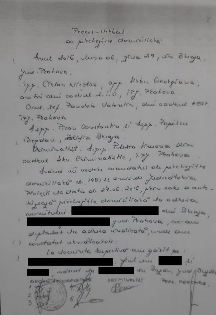 - detinem un proces-verbal de perchezitie domiciliara incheiat in 29.06.2016 din care rezulta fara echivoc bunurile ridicate (pe care il atasam prezentei solicitari).