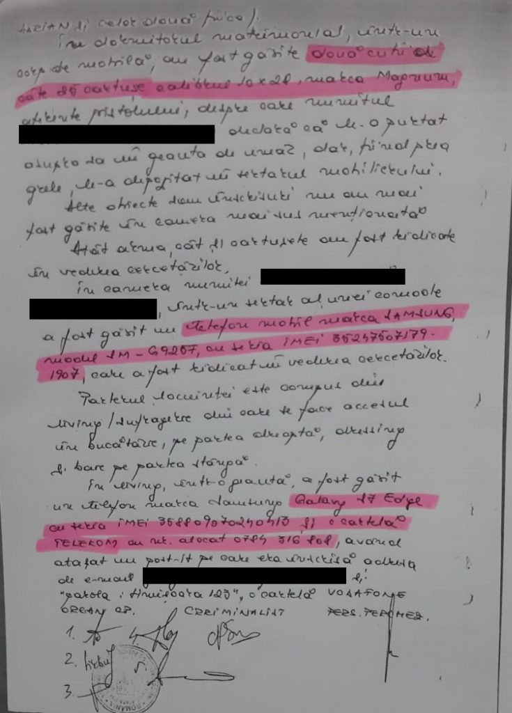 In fapt, pe circuitul singurelor acte legale ce conteaza, respectiv proces-verbal de perchezitie (ridicare)- proces-verbal de predare a bunurilor- rechizitoriul trimis in instanta (in care nu este mentionata o eventuala disjungere a cauzei), procurorul Topală Teodor-Bogdan a atins performanta de a face disparute cele doua telefoane mobile (un telefon mobil marca Galaxy 17 Edgl cu seria IMEI 358809070240410 si un telefon mobil marca Samsung, modelul lM-G9207, cu seria IMEI B15247507179).