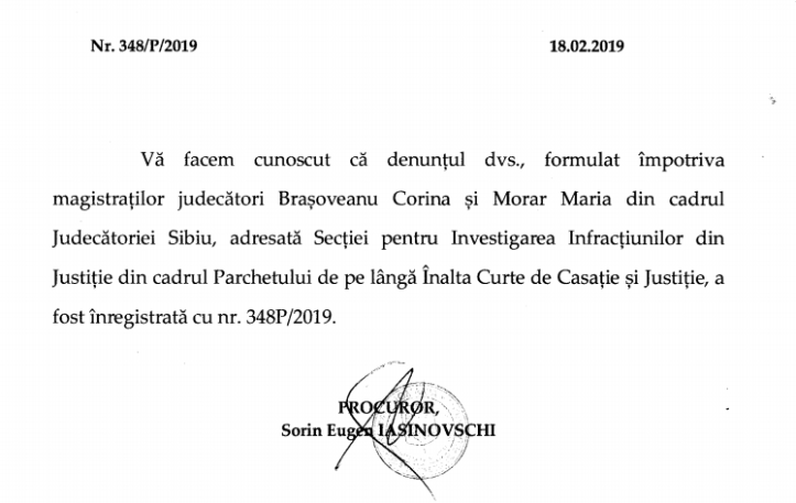 In urma unui denunt al Asociatiei Civice Solidaritatea Hunedoara impotriva celor doua judecatoare, initial s-a deschis un dosar penal la Parchetul General, care apoi a fost declinat la DIICOT, de unde ulterior a fost declinat la SIIJ.