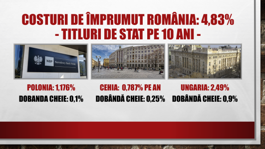 Domnul Loază ne arată că polonezii (banca lor centrală fiind condusă de un fost membru al Solidaritatea și nu de un fost turnător al Securității, ca în România) sunt cam proști pentru că au redus dobânda cheie de la 1,5% la 0,1% și prin urmare statul polonez se împrumută pe 10 ani la dobânzi de 1,17%, în timp ce România se împrumută (cu dobânda cheie ținută sus de Manole la 1,75%) la dobânzi de peste 4 ori mai mari – respectiv 4,83%.