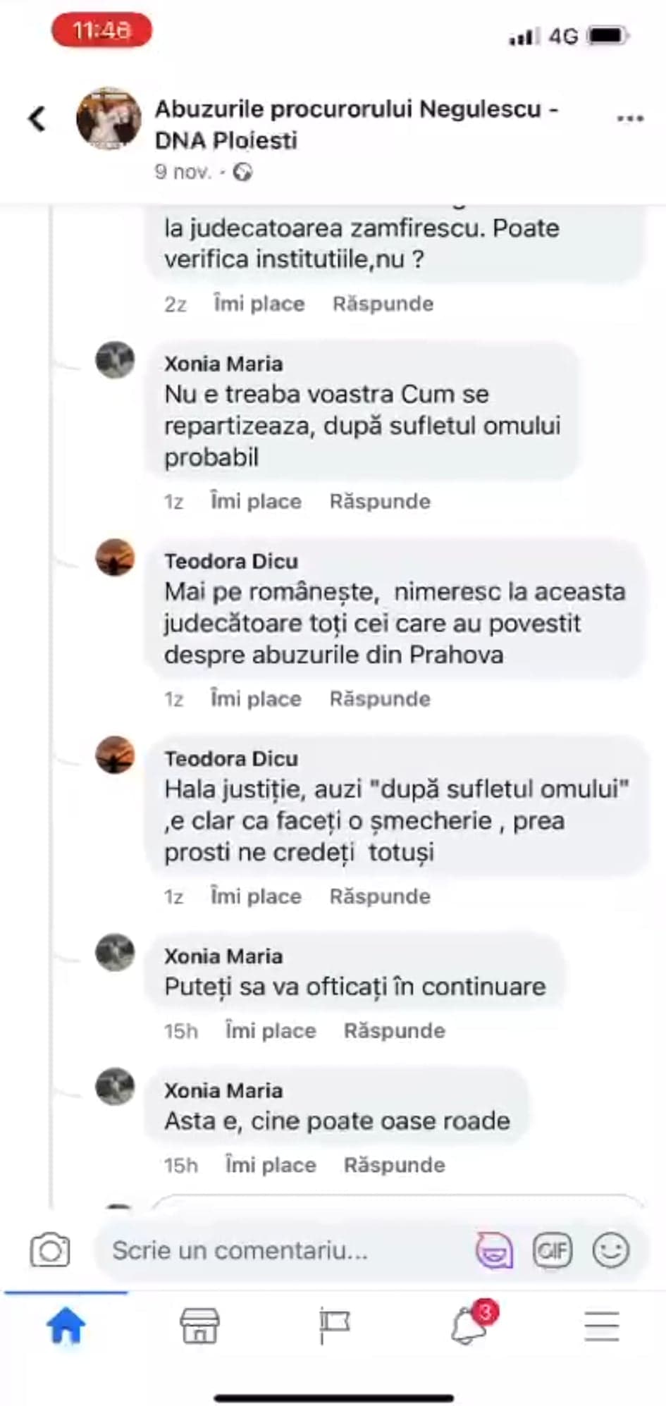 La acest articol al colegilor ofiterul judiciarist din cadrul IPJ Prahova, Popescu Ana Maria, actuala sotie a procurorului Negulescu Mircea care utillizeaza contul de facebook Xonia Maria – a reactionat, din nou.