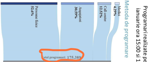 Cu font mic și pe vertical este pusă cifra care mă interesa cel mai mult: numărul de programări: 175.389 făcute în perioada 15 ianuarie 2021 (ora 15.00) – 16 ianuarie 2021 (ora 20.00). Întoarcem graficul, ca să se vadă bine: 175.389.