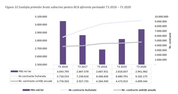 Graficul arată și că sunt 9,18 milioane de contracte încheiate (pentru circa 6 milioane de autovehicule), întrucât asigurarea poate fi anuală, semi-anuală, lunară, deci un proprietar poate încheia mai mult de un contract.