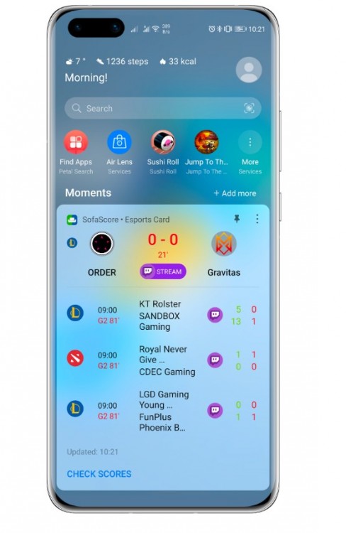 Prin integrarea cu HUAWEI Assistant, utilizatorii vor putea glisa la stânga pentru a accesa cardul Esports SofaScore, alături de multe alte carduri inteligente care oferă notificări și memento-uri utile, bazate pe nevoi personalizate și scenarii de utilizare specifice. De la știri și vreme, până la piața bursieră sau programul zborurilor, toate informațiile afișate depind de alegerea personală a utilizatorului. Așadar, prin intermediul funcției AI Tips din HUAWEI Assistant, utilizatorii vor primi rezultate și alerte, în timp real, conform preferințelor identificate în materie de jocuri, echipe sau subiecte Esport.