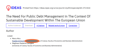 • Articol 2: ,,The need for Public Debt Management in the Context of Sustainable Development within the European Union”, este publicat în 2011 în Analele Universității din Oradea (non-ISI) și semnat co-autorat cu o colaboratoare de lungă durată a lui Nicu Marcu, Meghișan Georgeta-Mădălina.