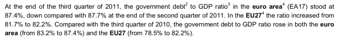 • Diminuarea datoriei publice (ca procent în PIB așa cum stipulează criteriul de convergență) nu implică surplus bugetar. Ponderea datoriei publice în PIB  (Maastricht) poate scădea chiar cu deficit bugetar, atâta timp cât PIB-ul real crește, pentru că la pondere se referă criteriul și nu la valoare nominală. Desigur, Nicu Marcu nu oferă nicio dată, nu analizează niciun stat, nu face niciun calcul, nu evaluează nicio dinamică a datoriei publice în niciun stat în maculatura plătită din bani europeni și numită: ,,Impactul criteriilor de convergență asupra statelor din zona Euro”. Vă închipuiți că deși articolul anunță impactul asupr (tuturor) statelor din Zona Euro și al (tuturor) criteriilor de convergență asupra (tuturor) statelor din zona Euro, în articol nu se regăsește nici măcar menționat vreun stat din zona Euro, nici măcar impactul criteriilor asupra unui singur stat? Maculatură plătită din bani publici pentru concluzia ,,nu se știe”, respectiv pentru bunăstarea cercetătorului post-doctoral, Nicu Marcu.