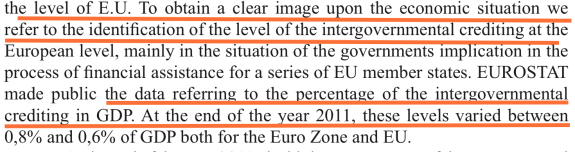 • Deși ne anunță că ne va prezenta Caracteristicile crizei economico-financiare din Europa, articolul nu prezintă nicio caracteristică, nu mai vorbesc de caracteristici diferențiate ale țărilor sau ale grupelor de țări. Articolul nu calculează nimic, iar concluziile sunt lipite și fără sens în raport cu restul articolului. În concluzii se referă la ,,măsuri anti-ciclice promovate de statele membre” (care state?, care măsuri? care politici?), la mix-ul de politici economice (fără să le identifice, fără să arate caracteristicile), la ,,planuri de austeritate” fără să arate unde, când și cum s-au aplicat sau unde nu s-au aplicat și ce rezultate, se referă la ,,financial societies” în loc de financial companies, pe scurt, o maculatură fără nicio valoare științifică