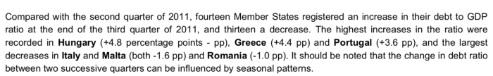 În esență, articolul 3 fură cu tupeu calculele făcute de Eurostat în premieră (Eurostat menționează îngroșat în comunicatul de presă că ,,Eurostat publică pentru prima dată un comunicat de presă cu date trimestriale privind datoria publică”, iar Marcu și Meghișan le fură cu tupeu, asumându-și ei aceste calcule, și indicând ca sursa (pentru date, chipurile ei făcând calculele) o sursă falsă (Banca Centrală Europeană).