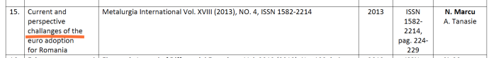 Observați că toate articolele au fost publicate într-o singură ediție a revistei Metalurgia, din 2009 – volumul IV, care, din cauza cererii mari de viitor profesori universitari de la Craiova care scriau articole la comun (niciunul de unic autor) ca să fie punctați și să își ia gradele, a fost nevoită să facă 3 ediții speciale, iar autorii de la Craiova și-au pus în CV, articole ISI Thompson obligatorii pentru obținerea titlului de profesor universitar. Le-a verificat în mod real cineva, în afară de ,,board-ul” editorial al Metalurgia?