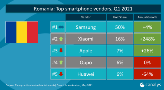 Canalys: Xiaomi – locul 2 în România, locul 2 în Europa și locul 3 în lume la livrările de telefoane inteligente din T1 2021