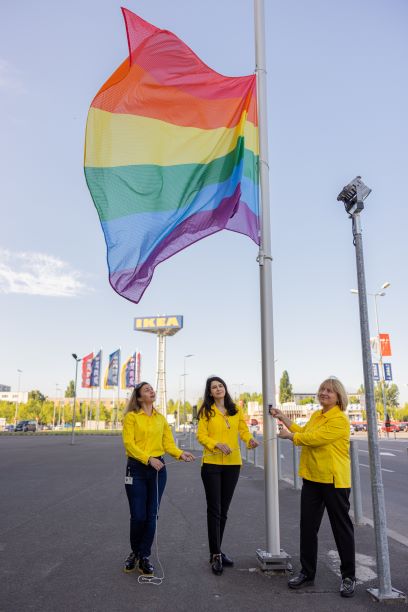La IKEA, marcăm celebrarea IDAHOT prin consolidarea angajamentului pe care îl avem pentru a crea un mediu de lucru incluziv în care toți colegii noștri LGBT + se simt bine-veniți, respectați și apreciați pentru cine sunt. Ne dorim să le arătăm oamenilor că dragostea, indiferent de felul ei, este mult prea mare pentru a fi limitată la patru pereți. Pur și simplu are nevoie de mai mult spațiu. IKEA este un brand ghidat de viziunea de a crea o viață de zi cu zi mai bună pentru cât mai mulți oameni și, astfel, simțim responsabilitatea și privilegiul de a putea susține o schimbare pozitivă a societății în acest sens”, a declarat Violeta Neniță, Manager de piață IKEA România, care a ridicat astăzi steagul curcubeu în fața magazinului IKEA Pallady.
