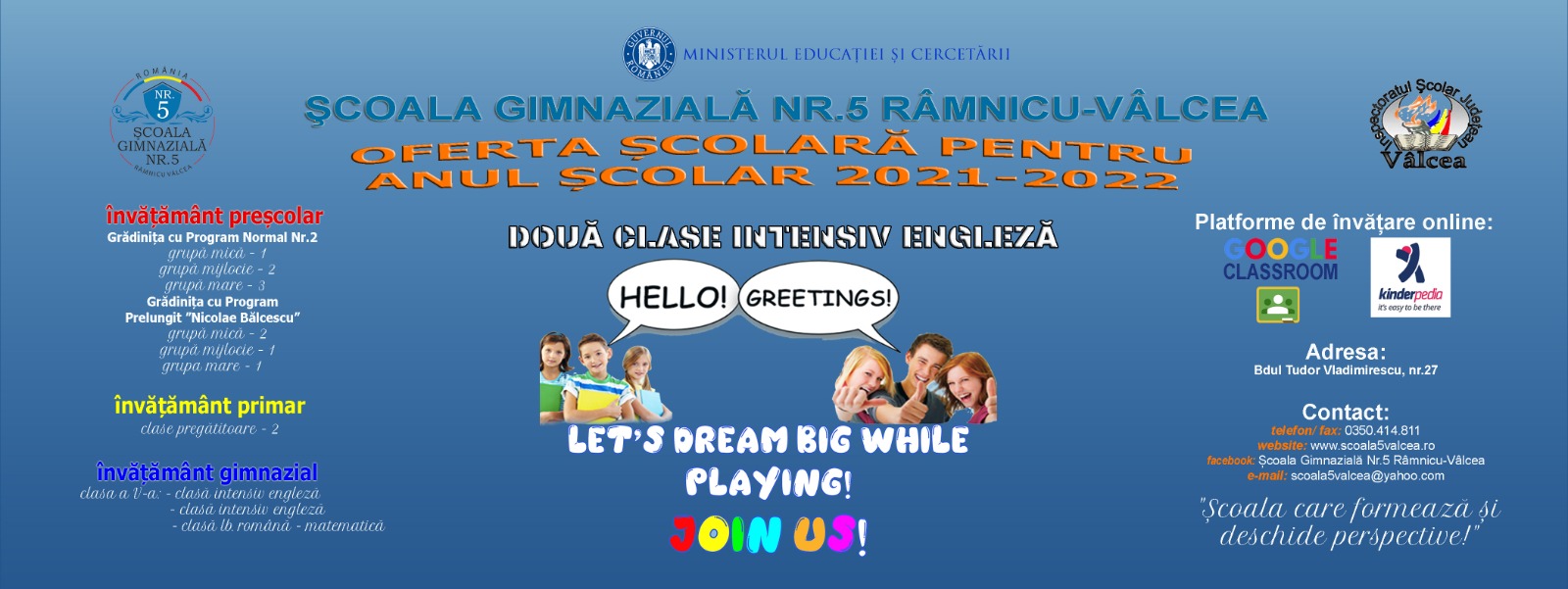 LA CLASA a V-a INTENSIV – ȘCOALA GIMNAZIALĂ NR.5 RM. VÂLCEA