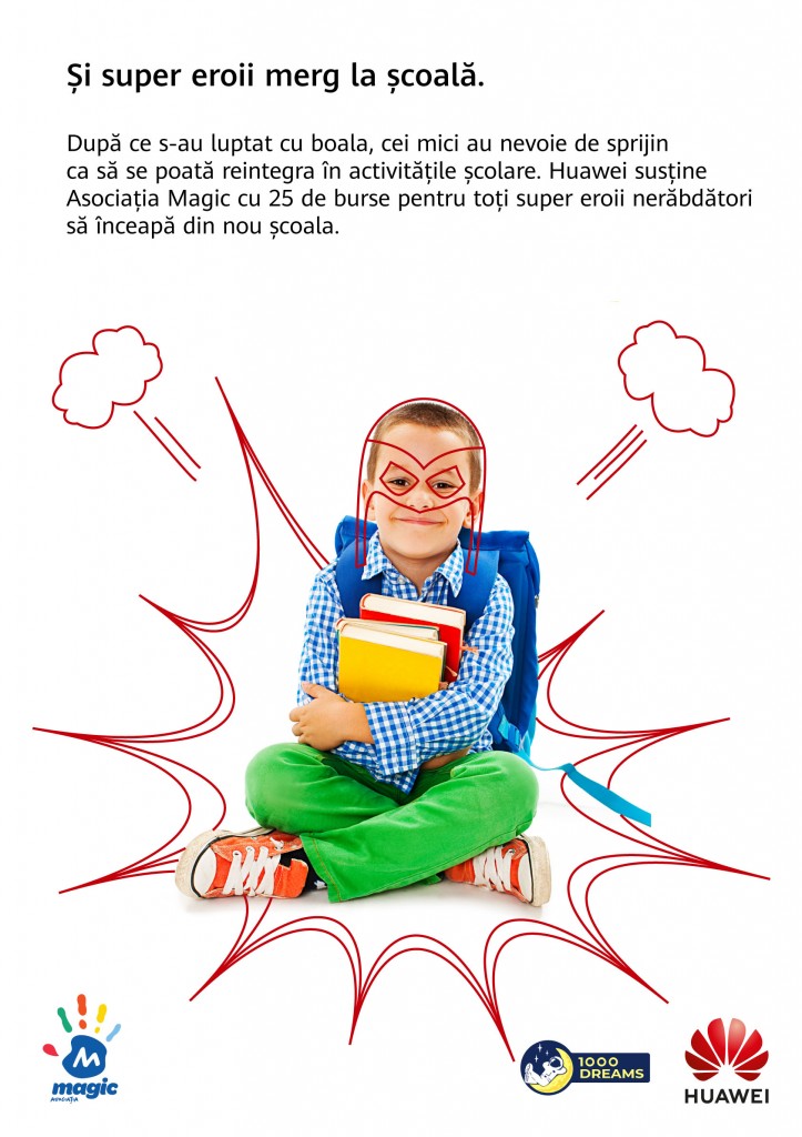 Astfel, Huawei va oferi burse în valoare de 33.000 de euro pentru copiii care se reîntorc la școală după ce au luptat cu boala și care au nevoie de rechizite școlare, cărți și de ore suplimentare pentru a recupera materia predată în lunile sau chiar anii de tratament și spitalizare.