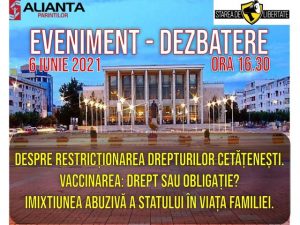 Alianța Părinților, Starea de Libertate și Frăția Ortodoxă Sfântul Gheorghe purtătorul de biruință vor organiza în ziua de duminică, 6 iunie, de la ora 16:30 în fața Casei de Cultură a orașului Bacău, un eveniment -dezbatere despre situația drepturilor și libertăților cetățenești, sever afectate în perioada pandemiei.