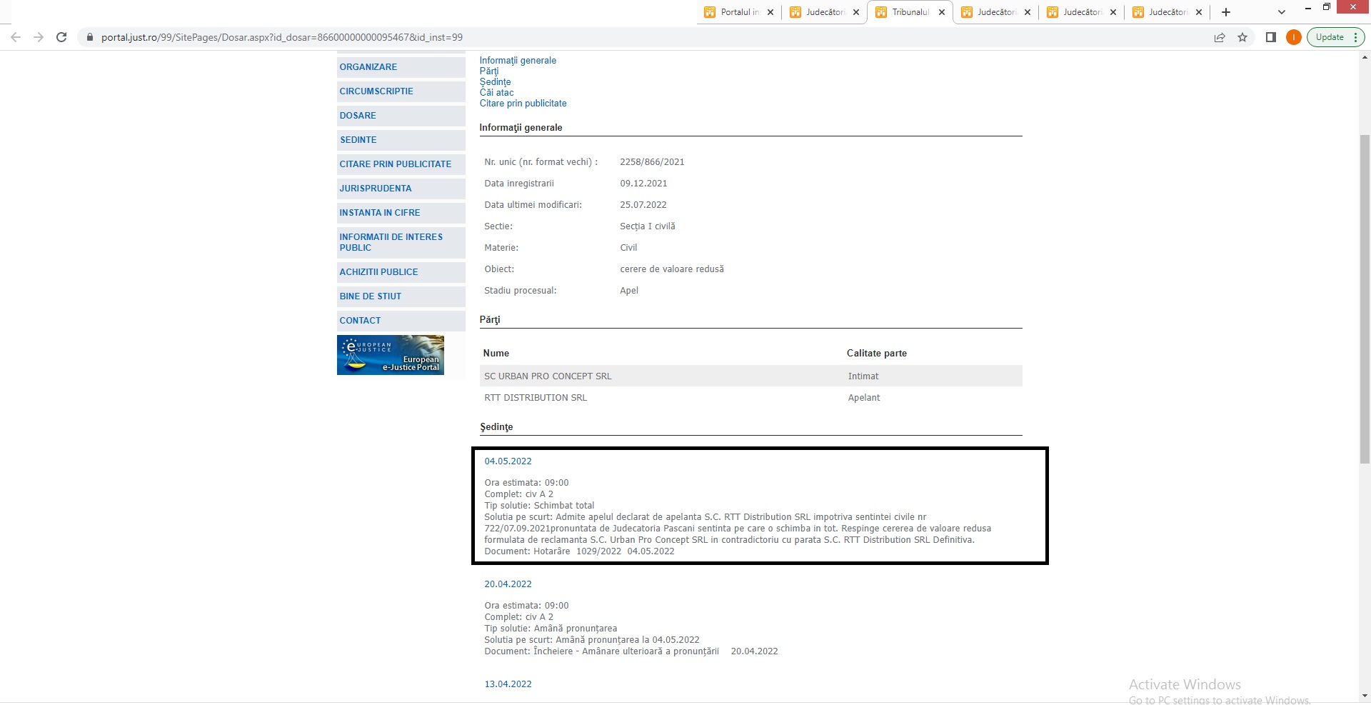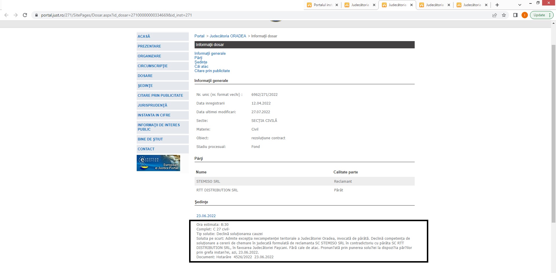 cele 3 procese castigate cu firmele care au data in judecata RTT DISTRIBUTION SRL si au pierdut.