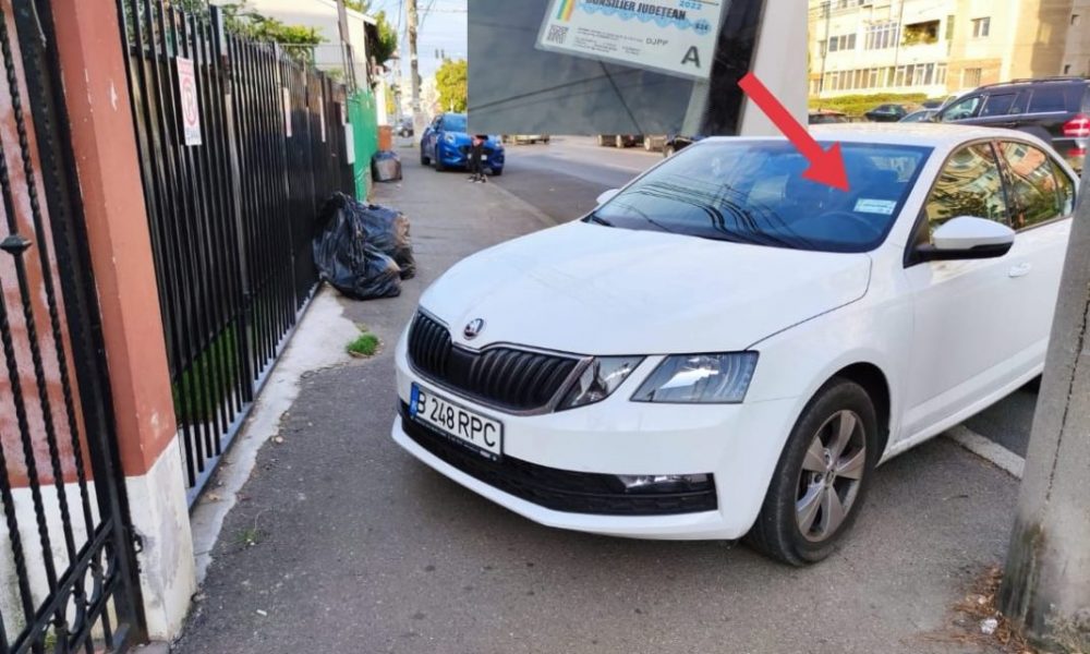 Ploiești, strada Gheorghe Grigore Cantacuzino – o parcare neregulamentară și o probă de dispreț dată de un șofer care a avut grijă să își pună în geam un permis de parcare.