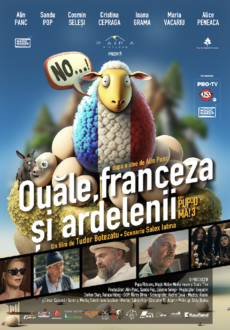 Filmul ,,PUP-O, MĂ! Ouăle, franceza și ardelenii” este produs de PAPA Pictures, Static Tree Pictures și Magic Maker Media House, casa de producție a grupului UNTOLD Universe.