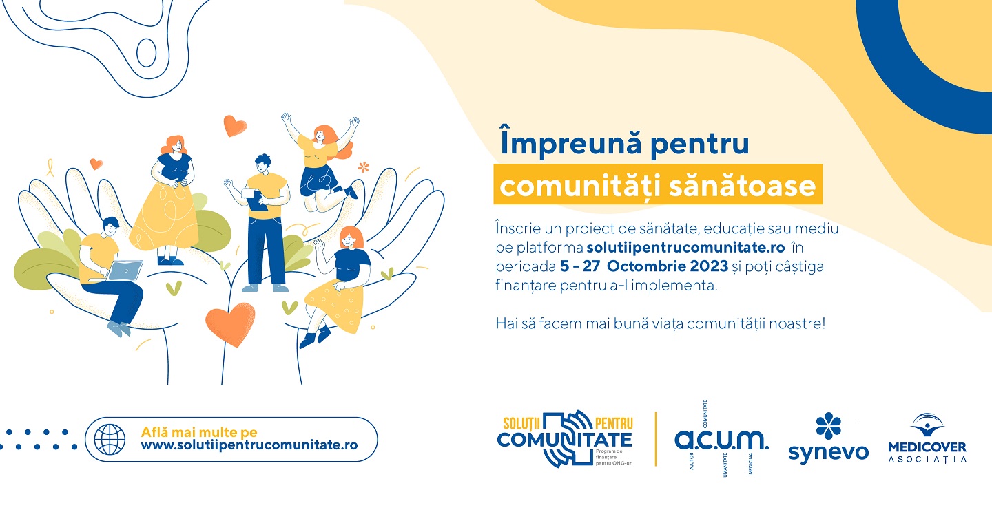București, 3 octombrie 2023 – Synevo România, liderul pieței locale de servicii de diagnostic de laborator, inițiază, cu sprijinul Asociației Medicover, a doua ediție a inițiativei „Soluții pentru Comunitate”. Aceasta reprezintă un efort concentrat de-a lungul unui an de zile pentru a scoate în evidență, sprijini și finanța și  concretiza zece proiecte remarcabile ce vizează educația, sănătatea și protecția mediului.