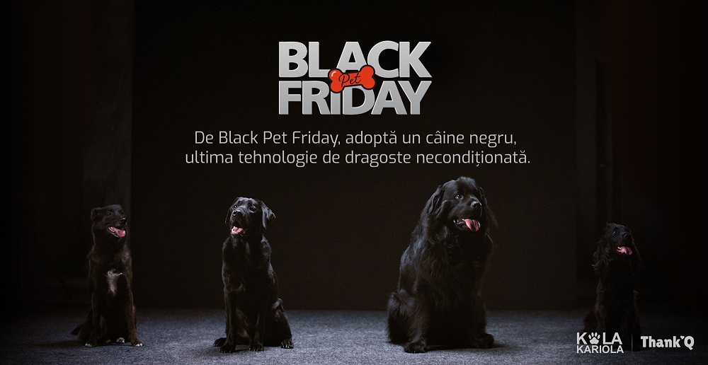 București, 9 noiembrie 2023 – Cu ocazia Black Friday, DDB România, în parteneriat cu Adăpostul Kola Kariola și cu sprijinul brandului Thank’Q, lansează campania Black Pet Friday. Această inițiativă are ca scop oferirea de oportunități de adopție pentru câinii cu blană neagră, arătând că acești patrupezi sunt la fel de prietenoși și adorabili ca toți ceilalți câini, în ciuda superstițiilor care îi înconjoară.