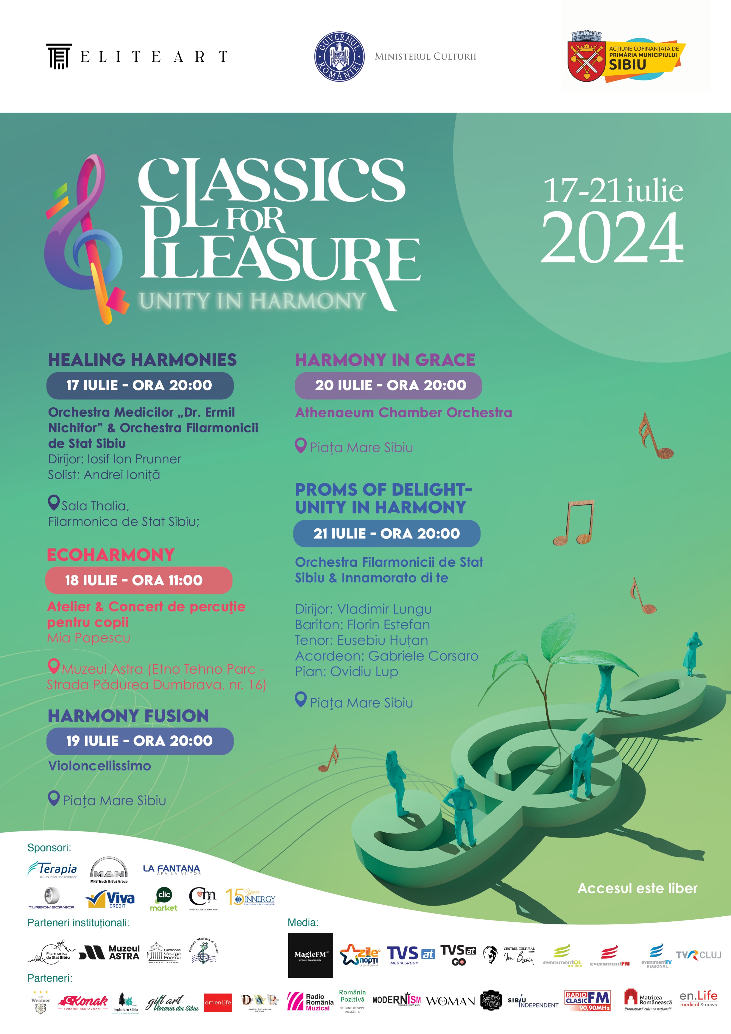 Parteneri instituționali: Filarmonica de Stat Sibiu, Muzeul ASTRA, Filarmonica „George Enescu”, Fundația „Medicină și Muzică”.