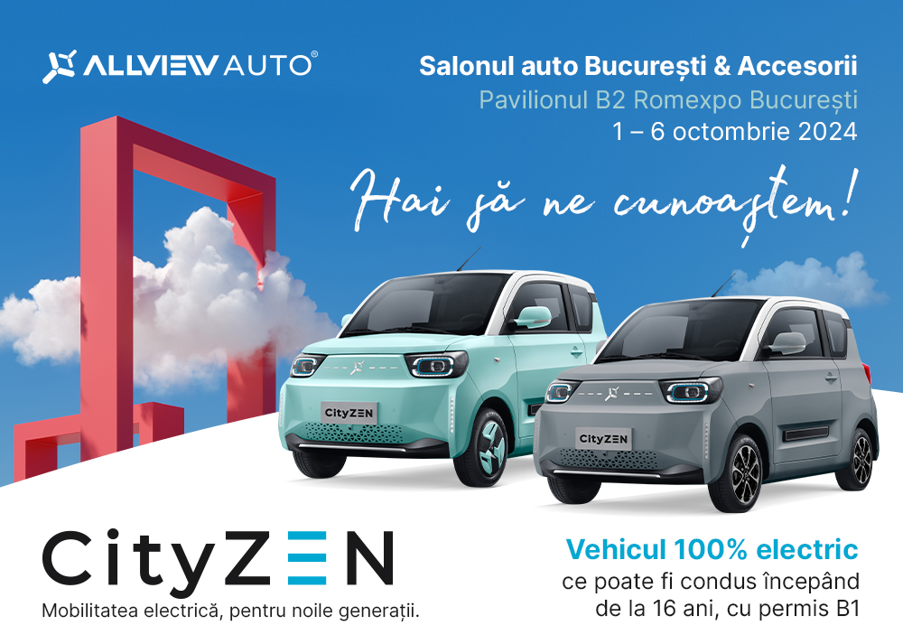 Cu ocazia acestui prestigios eveniment, Allview Auto va prezenta CityZEN, prima mașină 100% electrică a brandului Allview, care poate fi condusă începând cu vârsta de 16 ani. Allview CityZEN a fost lansată la finalul anului 2023 și a atins deja obiectivul de vânzări pe anul 2024, în doar primele șase luni, devenind un reper pentru mobilitatea urbană eco-friendly. Modelul Allview CityZEN prezintă avantajul unui consum redus de energie, de aproximativ 8 kW/100km, ceea ce îl plasează în topul celor mai economice autovehicule din piață.