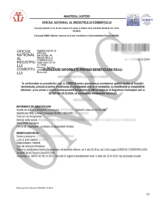 Acest certificat atestă înregistrarea unei firme la Registrul Comerțului. Este necesar în momentul în care dorești să demonstrezi existența oficială a unei firme.